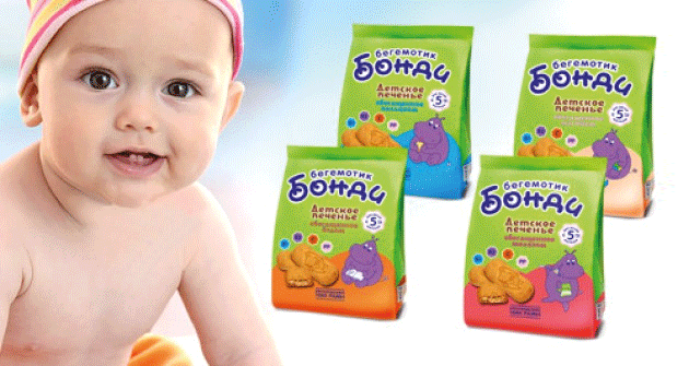 Яркий дизайн упаковки сразу обращает на себя внимание. На упаковке печенья живет карапуз Бегемотик Бонди, он увлечен многими делами, а силы для роста и развития ему дают полезные микроэлементы, которые содержатся в каждом виде печенья. Таким образом, мама может играть со своим малышом и помогать ему познавать мир с помощью героя Бонди: «Вот бегемотик загорает. А вот он гуляет. Сейчас Леша докушает печеньку и тоже пойдет гулять». Для упаковки каждого вида печенья были разработаны рекламный текст и занятия для Бонди.